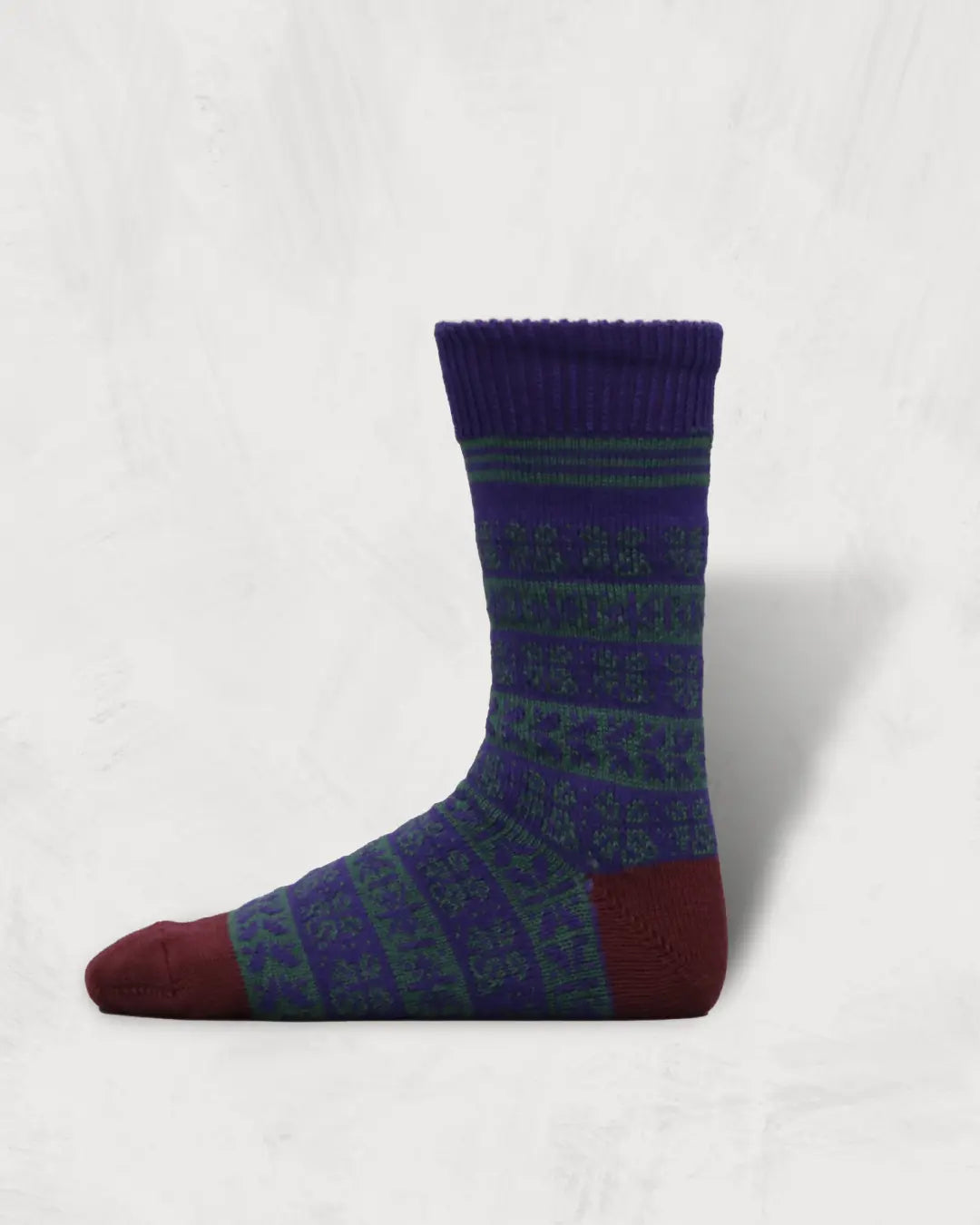 The clover-patterned jacquard socks were knitted using a special knitting machine that, while less efficient in terms of production, allows for this intricate design.