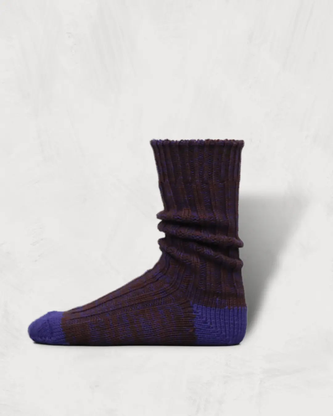 decka のシグネチャープロダクトである Heavyweight Socks を、異なる色の糸を引き揃えて編むことで、マルチカラーに作り替えた。