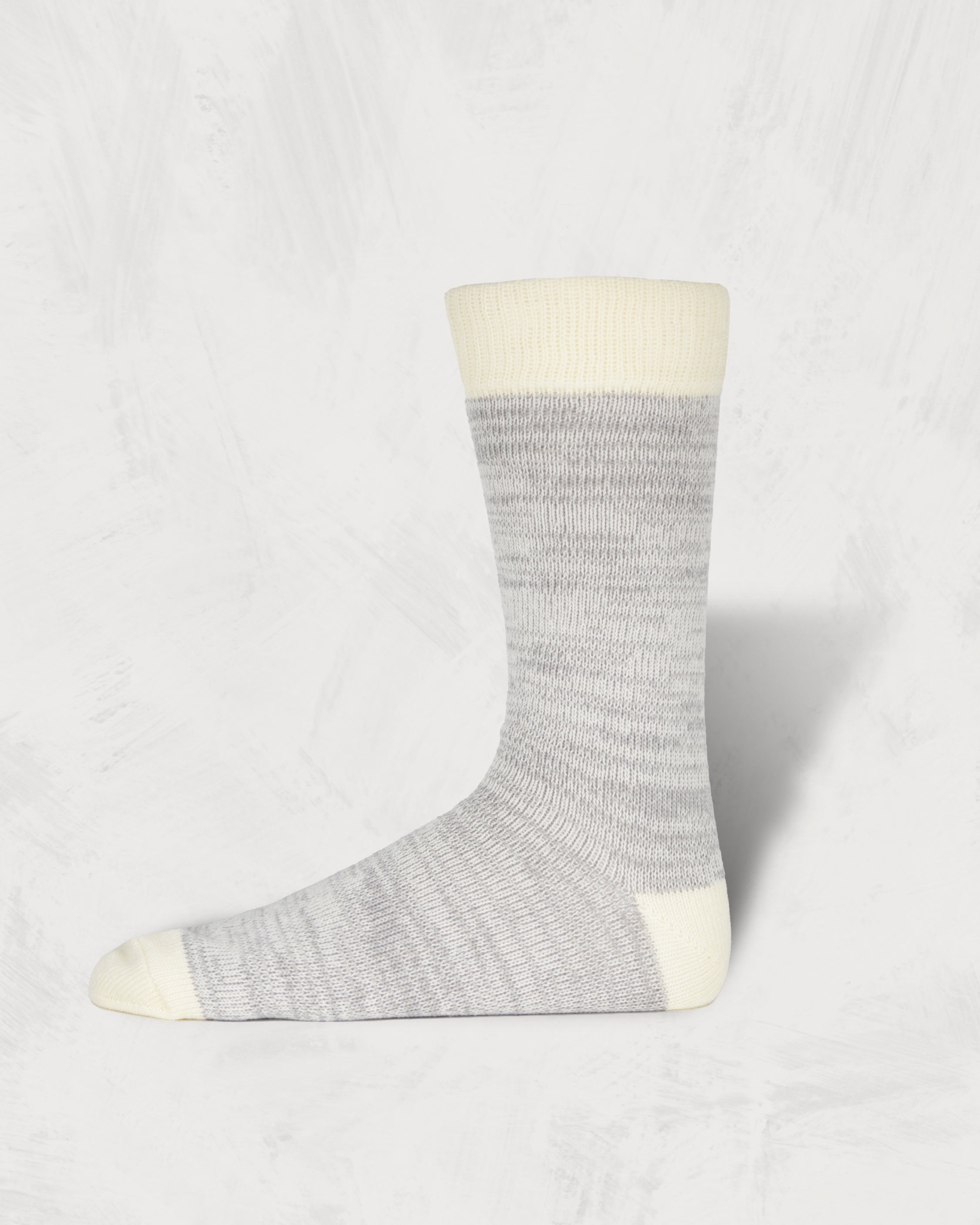 異なる色の糸を組合わせて編むことで杢調の配色を表現したミドルゲージソックス。